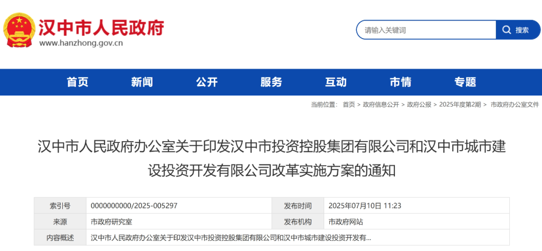 據(jù)漢中市政府,關(guān)于印發(fā)漢中市投資控股集團(tuán)有限公司和漢中市城市建設(shè)投資開發(fā)有限公司改革實(shí)施方案的通知。