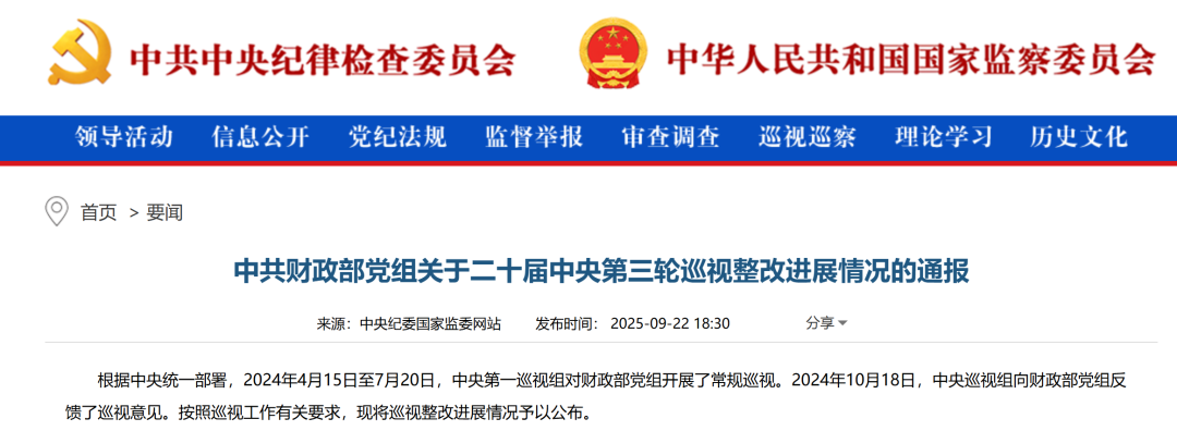 財(cái)政部巡視整改通報(bào):聚焦招投標(biāo)整治等各類(lèi)整改問(wèn)題,扎實(shí)開(kāi)展“十五五”規(guī)劃前期謀劃